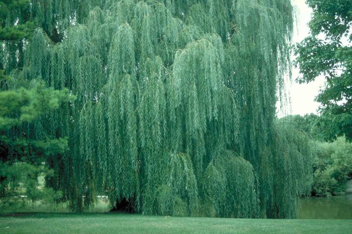 Having long, pendulous branches which grow toward the ground.