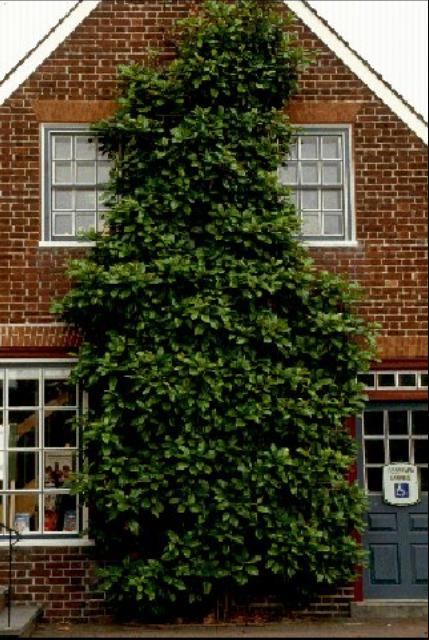 Trees (such as Southern Magnolia) that can be trained to grow flat against a wall ot trellis.