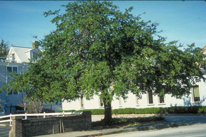 A tree (such as Live Oak) with a rounded, oval or spreading habit that usually casts significant shade.